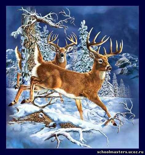 Схема вышивки «бегущие олени в зимнем лесу» (№302636)