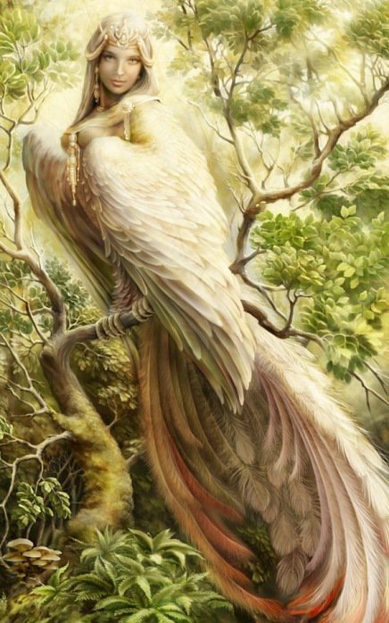 Девочки. Вы обе неправы. Это - птица счастья Сирин или Гамаюн. В древнерусской мифологии это женщина с головой птицы. Попадая в её сети, путник слушая её песни, забывал обо всем.Гамаю́н — в славянской мифологии вещая птица, поющая людям божественные песни и предвещающая будущее тем, кто умеет слышать тайное. Гамаюн знает всё на свете. Когда Гамаюн летит с восхода, приходит смертоносная буря.