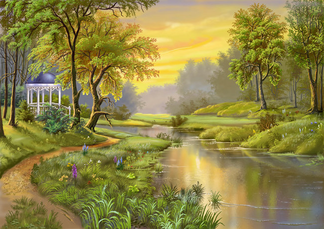 Схема вышивки «беседка у реки» (№317071)
