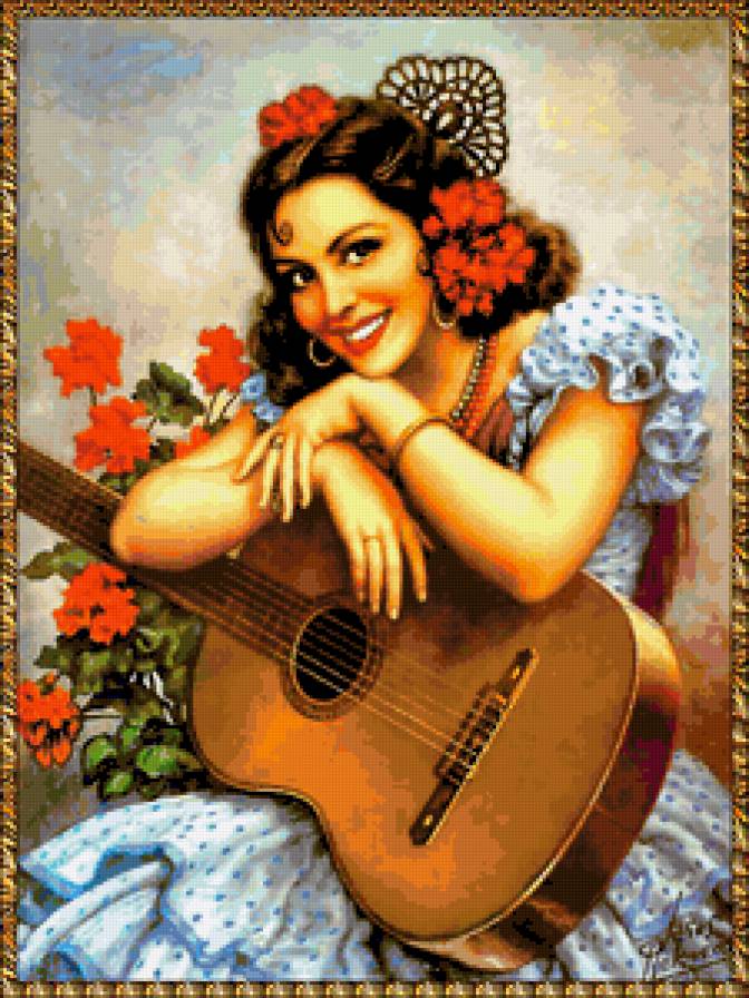 Комментарии к схеме вышивки «Девушка с гитарой» (№333394)