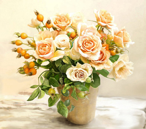 Теги: картина, живопись, букет, роза, цветы, белые цветы, розы.