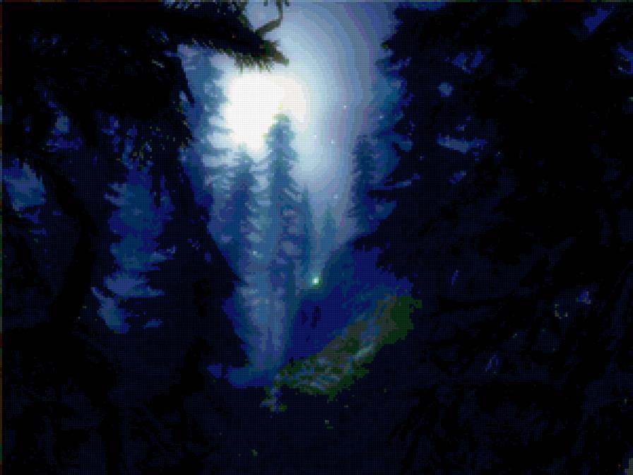 Теги: ночной пейзаж, луна, зима, зимний пейзаж, лес, месяц.