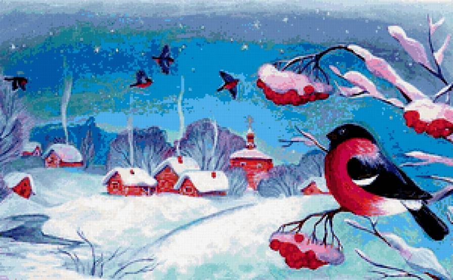 Схема вышивки «За окошком снегири...» (№341399)