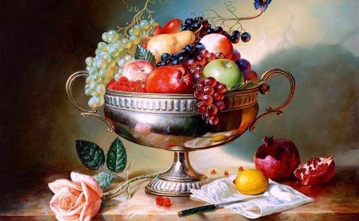 Схема вышивки «Натюрморт, цветы, фрукты» (№356785)