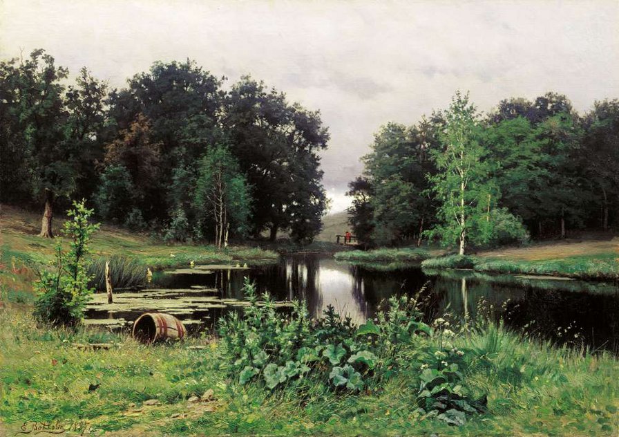 Схема вышивки «Пейзаж с прудом. Волков Ефим Ефимович (120 цветов)» (№357988)