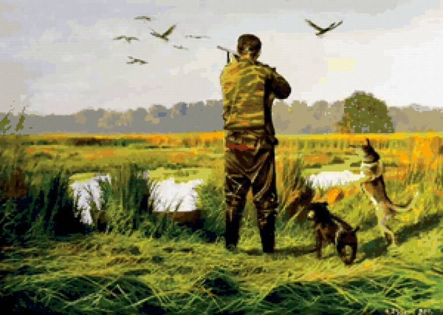 Схема вышивки «Юрий Александрович Зосич . Картина : охота на уток.» (№358162)