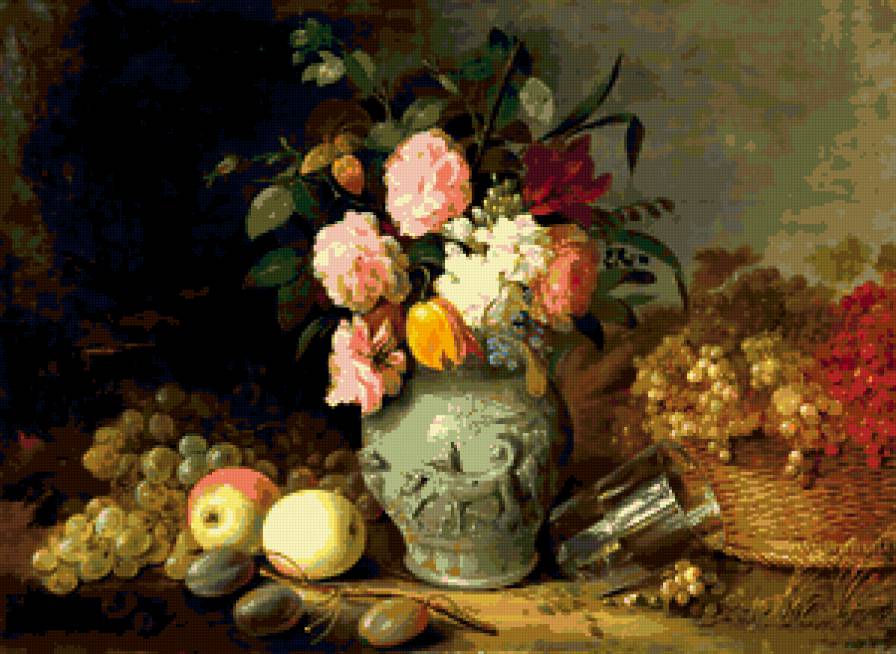 Схема вышивки «Натюрморт. Цветы и плоды. Хруцкий И.Ф.» (№360474)