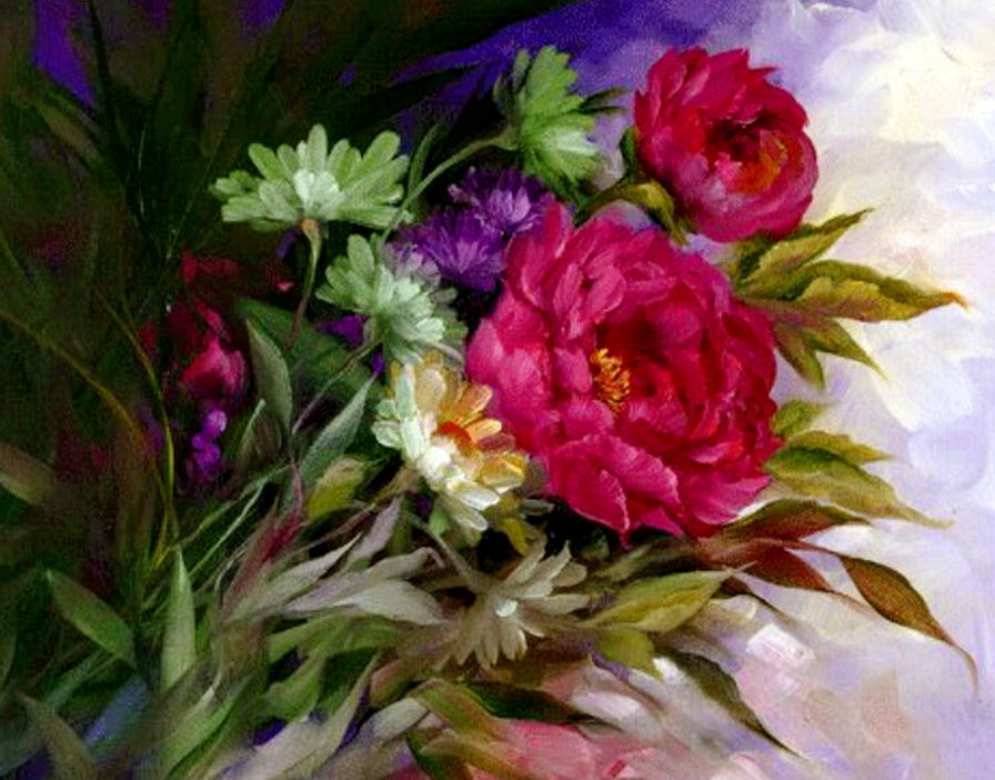 Теги: цветы, акварель, живопись, пионы, ваза, розы, букет.
