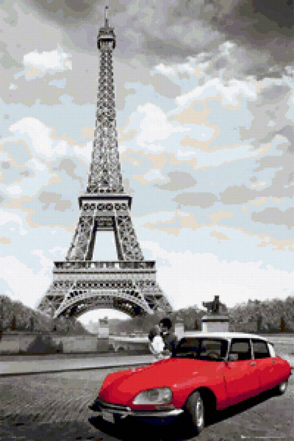 Схема вышивки «эйфелева башня и красная машина» (№380647)