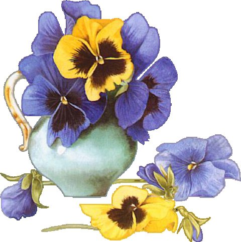 Теги: цветы, букет, корзина, анютины глазки.
