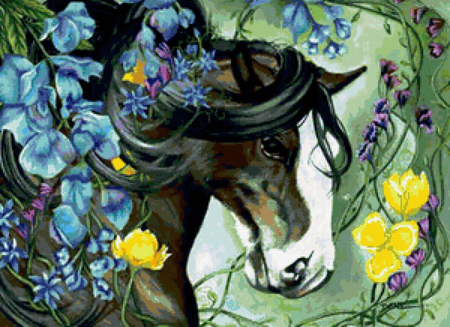 Схема вышивки «цветы и лошадь» (№384961)
