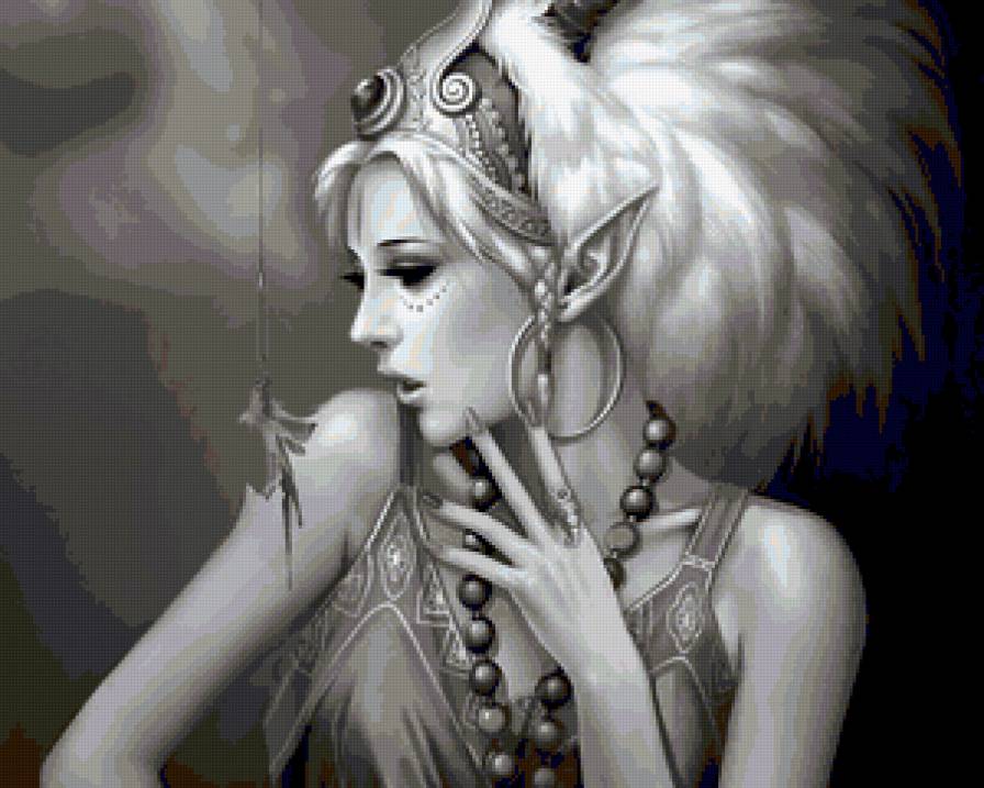 Схема вышивки «девушка с перьями черно белая» (№390873)