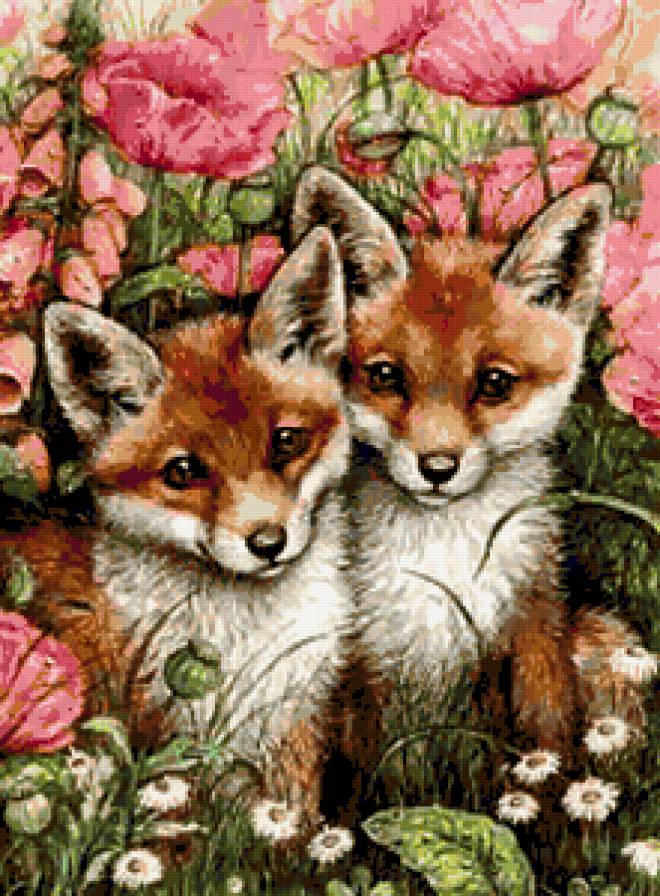 Схема вышивки «лисята» (№392378)