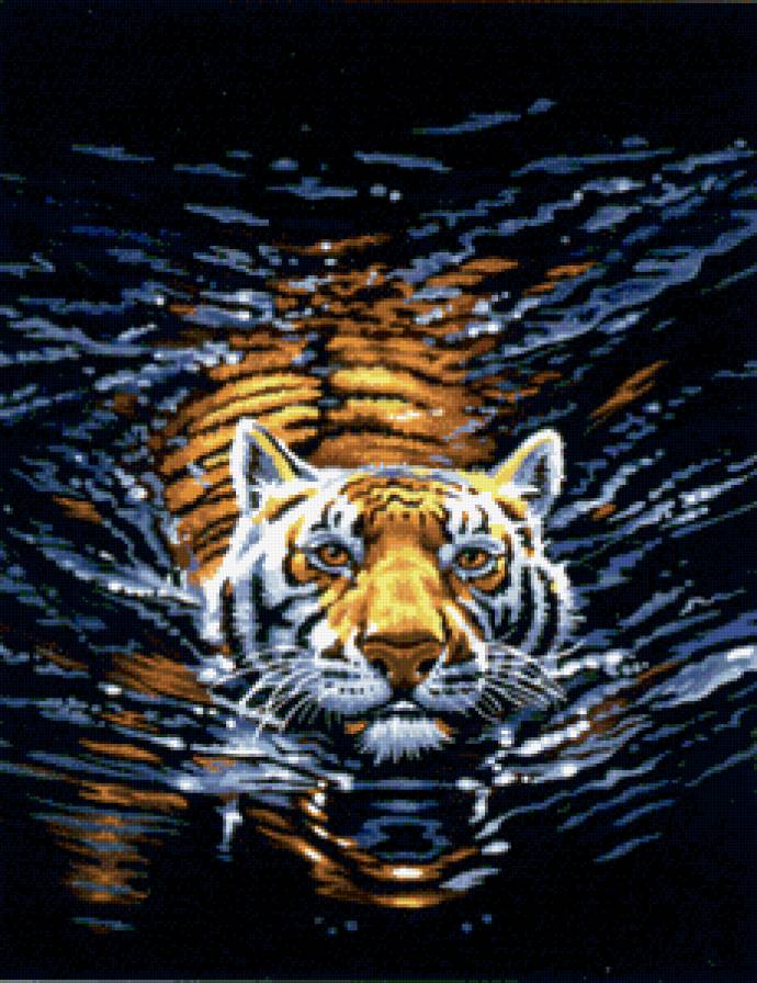 Схема вышивки «плывущий тигр» (№398517)