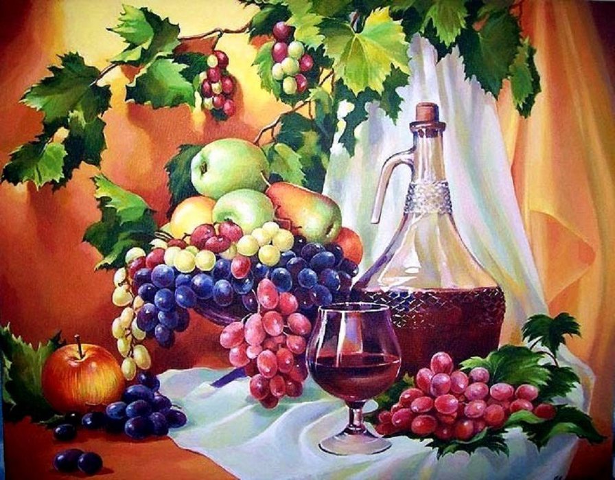 Теги: для кухни, панно, вино, виноград, фрукты, натюрморт.