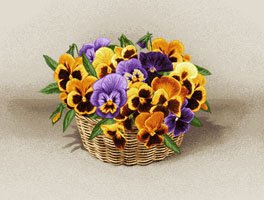 Теги: цветы, цветы в корзине, анютины глазки, виола.