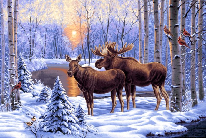 Схемы вышивки, похожие на «рассвет в зимнем лесу» (№401703) по сюжету