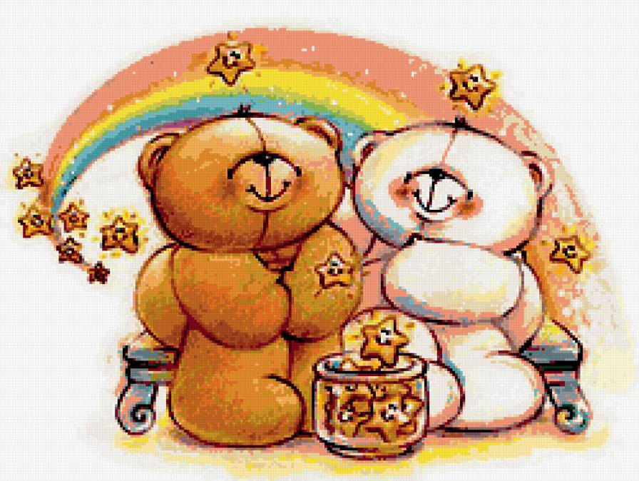 Схемы вышивки, похожие на «Мишки с радугой» (№408425) по сюжету