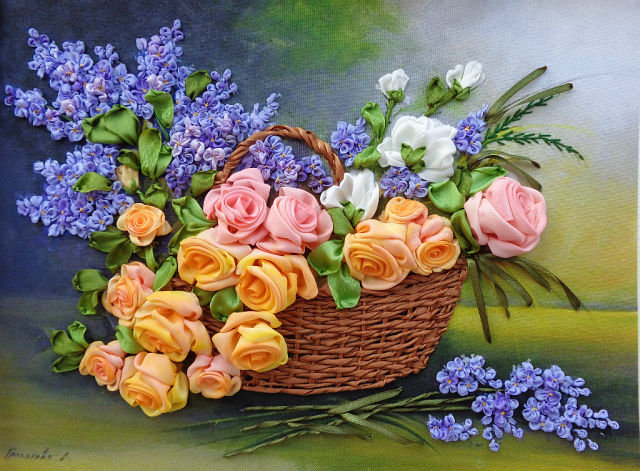 Схемы вышивки, похожие на «розы и сирень в корзине 105цв.» (№409173) по сюжету