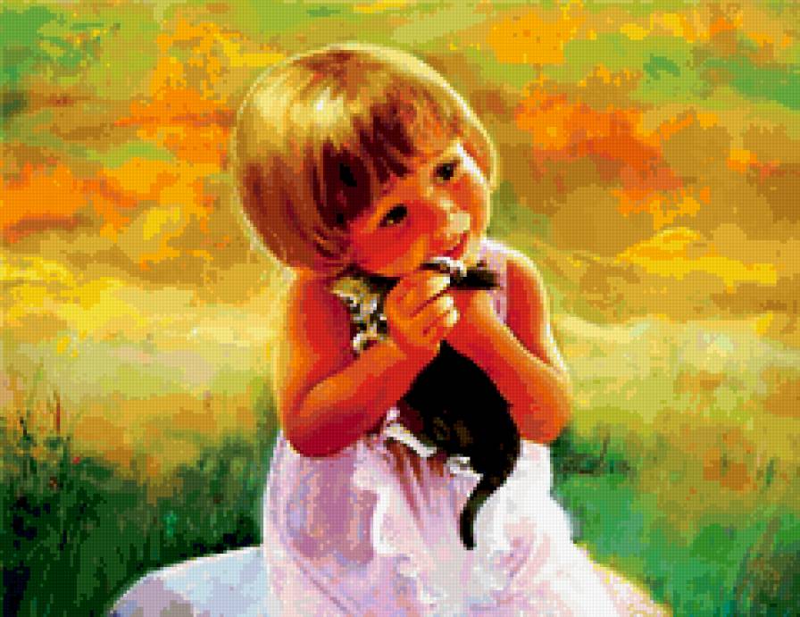 Схема вышивки «девочка с котенком» (№415927)