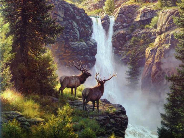 Схема вышивки «олени у водопада» (№417194)