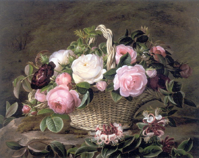 Теги: флора, душистые розы, розочки, розы, корзина, цветы.
