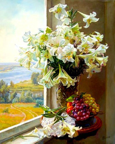 Схема вышивки «натюрморт с лилиями» (№426236)