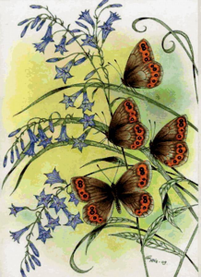 Схемы вышивки, похожие на «цветы и бабочки» (№427080) по сюжету
