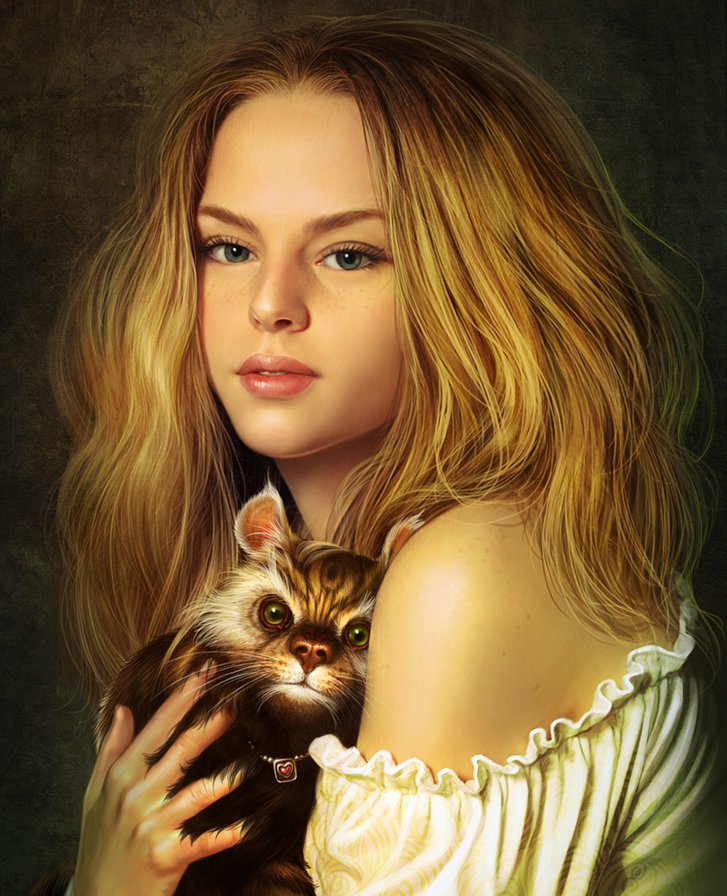 Схема вышивки «девушка и зверек» (№439736)