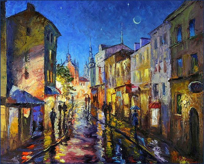 Теги: городской пейзаж, старинные здания, живопись.