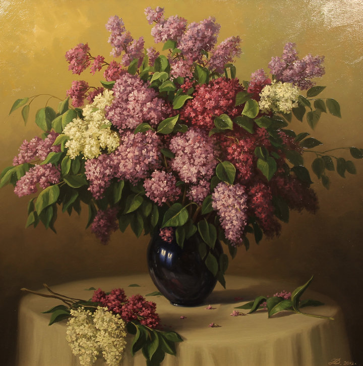 Теги: букет, сирень, ваза, натюрморт, живопись, весна, цветы.