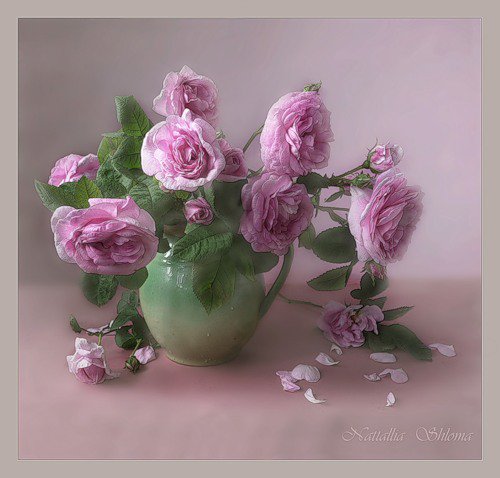 Теги: натюрморт, розы, живопись, цветы, букет, ваза, нежность.