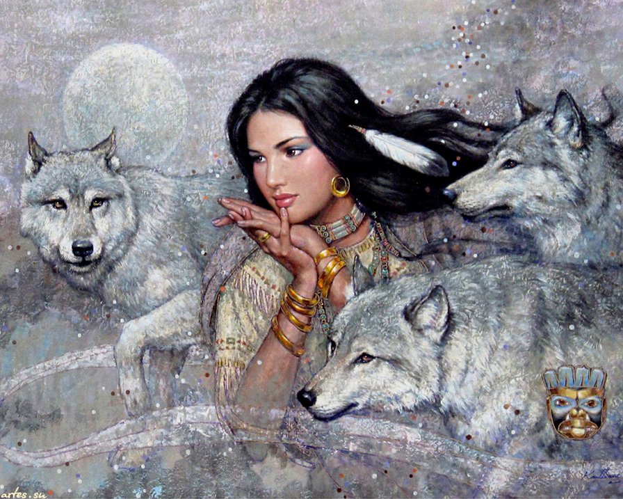 Комментарии к схеме вышивки «девушка с волками» (№460330)