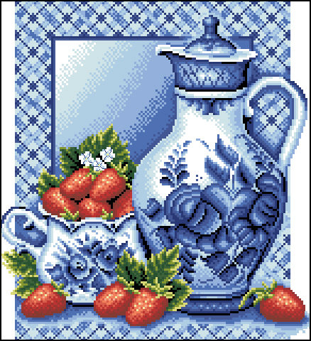 Комментарии к схеме вышивки «натюрморт роскошь гжели 2 клубника со сливками» (№468372)