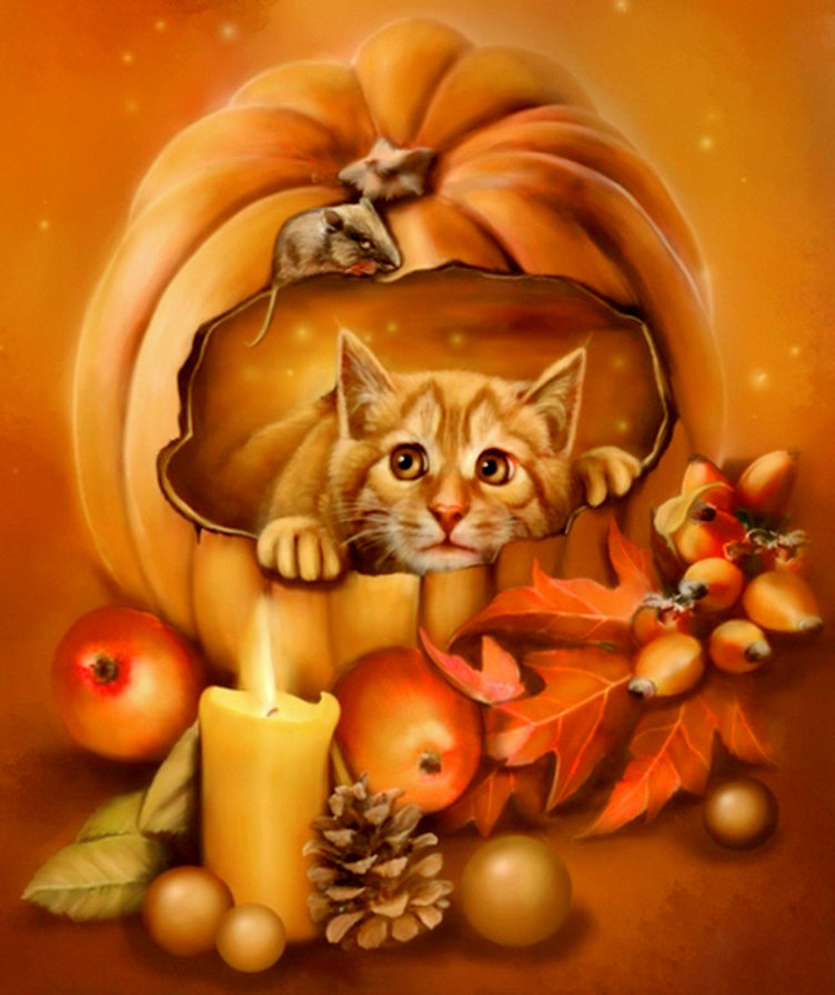 Теги: осень, листья, забор, цветы, кот, животные.