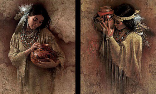 Теги: древные народы, индейцы, волк, хищник, картина, индианка.