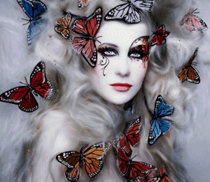 Схема вышивки «Девушка с бабочками» (№480877)