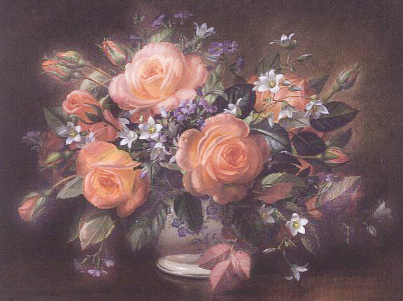 Теги: букет, цветы, живопись, розы, ваза, горшок, роза, корзина.