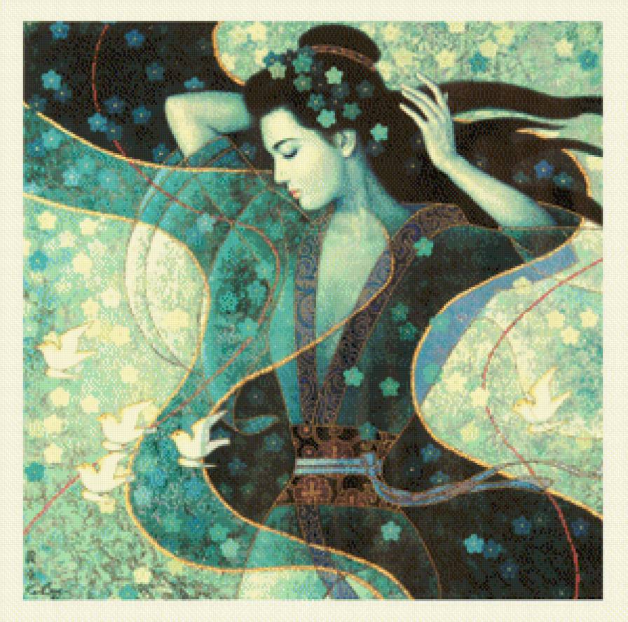 Комментарии к схеме вышивки «Девушка с птицами» (№494647)