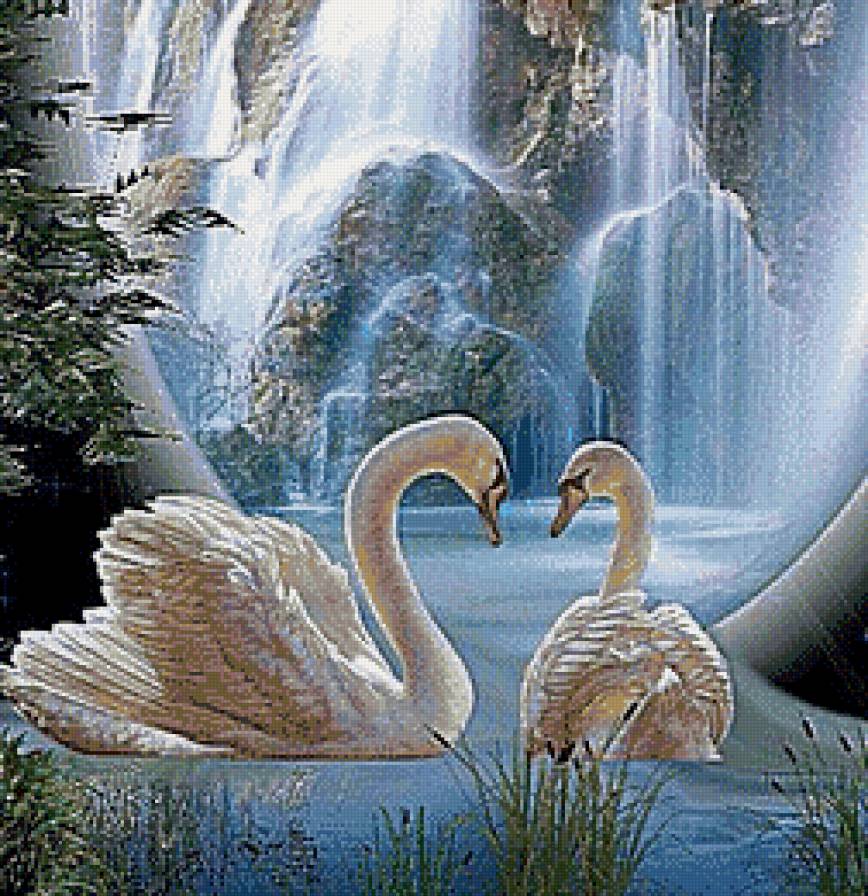 Схема вышивки «Лебеди у водопада» (№498364)