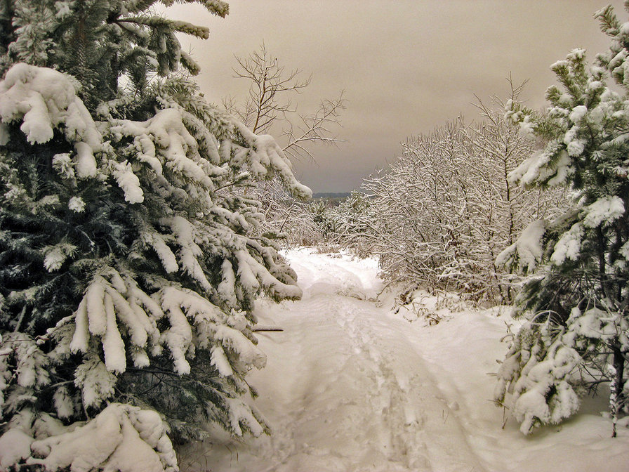 Теги: зима, закат, зимняя картина, снег, природа, лес, ели, пейзаж.