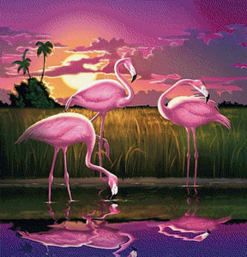 Схема вышивки «Фламинго на закате» (№513125)