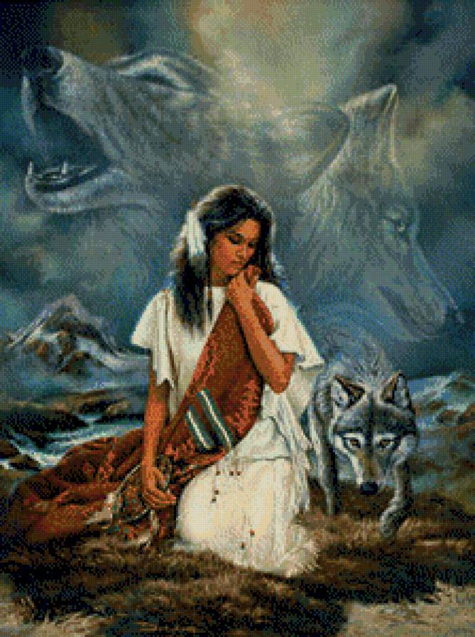 Схема вышивки «волки с девушкой» волки с девушкой