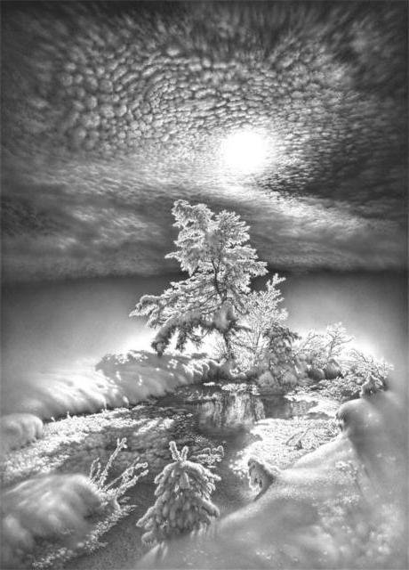 Теги: монохром, пейзаж, природа, зима, черно-белое.