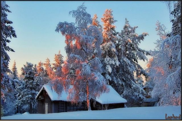 Теги: домик, пейзаж, зима.