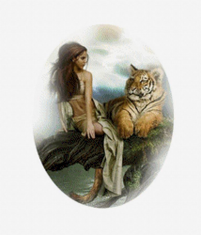 Схема вышивки «Девушка и тигр» (№520512)
