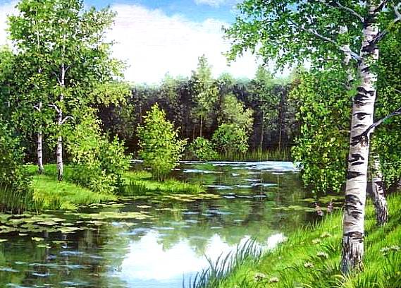 Теги: березки, река, озеро, лес, природа, деревьяр, живопись, пейзаж.