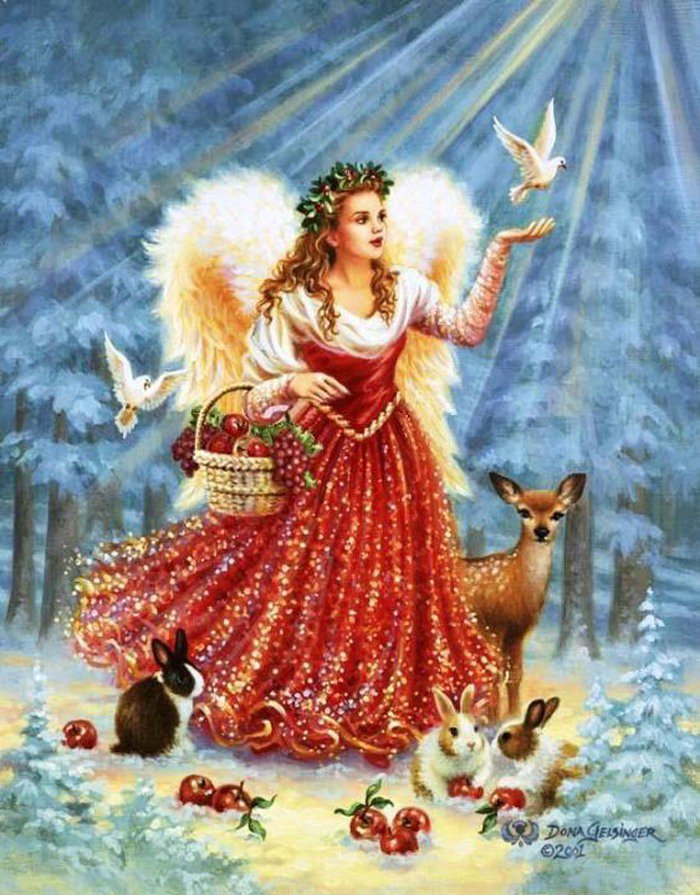 Теги: животные, лес, луч, ангел, праздник, дона гелсингер, рождество.