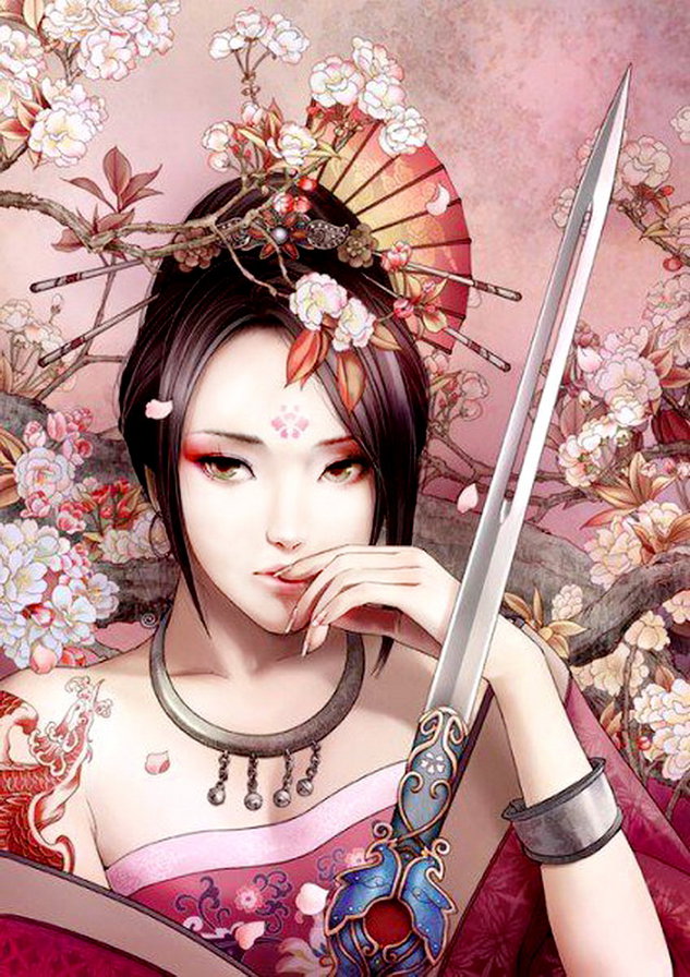 Теги: живопись, ночь, девушка, веер, восток, луна, женщина, картина.