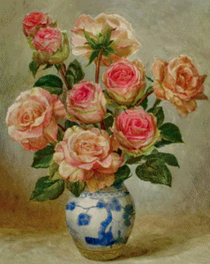 Схема вышивки «розы в синей вазе» (№532478)